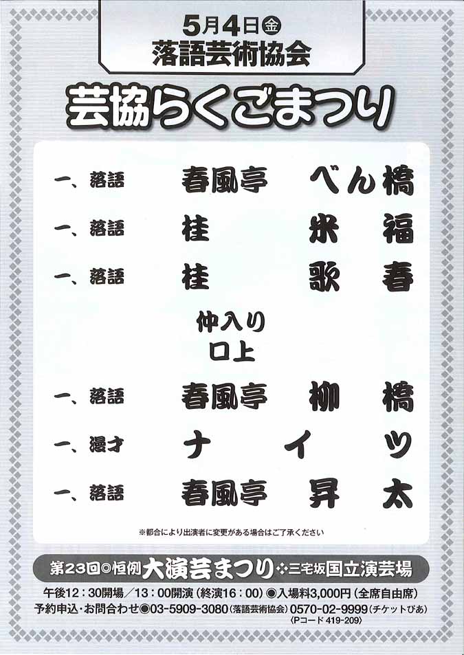 落語芸術協会 03-5909-3080