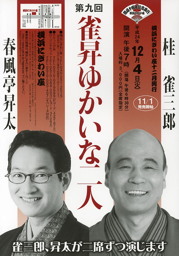 2012/11/1(木)より発売 横浜にぎわい座045-231-2515 チケットぴあ(Pコード422-875) ローソンチケット(Lコード31298)
